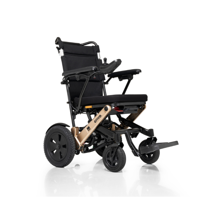 Stylishly designed in a neutral gold colour with sturdy frame design, the Erivo looks and feels the power chair that it is and does not compromise the convenience of its compact folding design on ride comfort and drive performance.