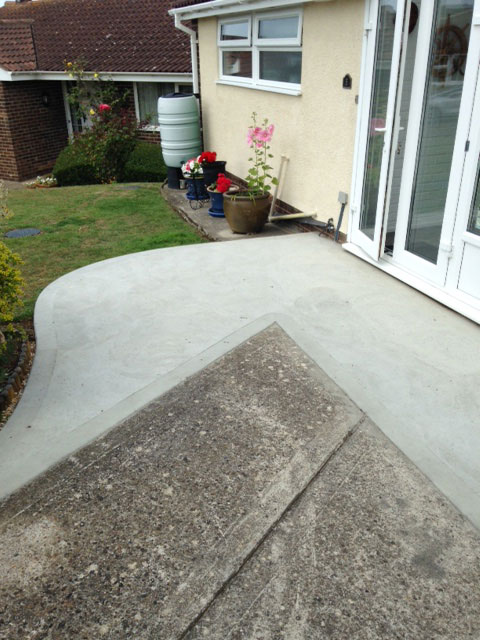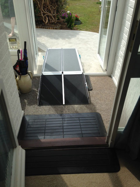 The concrete path area to the front of the property was extended to accommodate a 1200mm by 1200mm turning area at the start of the suitcase ramp, two aluminium porch ramps used in combination with the 50mm rubber porch ramp to provide access out of the rear door garage into the garden