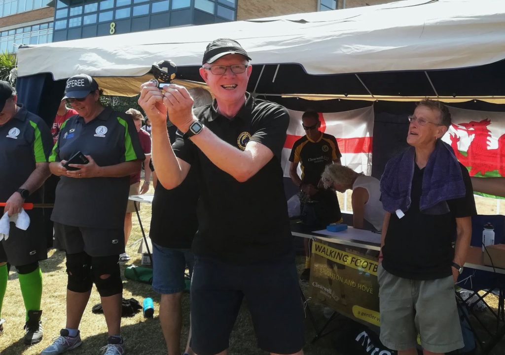 Clearwell Mobility and Brighton Walking Football Club celebrated the return of the Clearwell Cup on Saturday 7th July at Longhill Sports Centre in Ovingdean, Brighton.