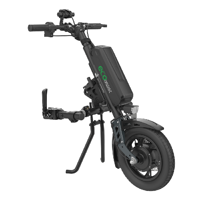 Compatible with rigid & folding wheelchairs with a fixed front frame. Features a 350W motor and an efficient Li-Ion battery, manual docking system and Twin -brake system: mechanical disc-brake and electric brake.