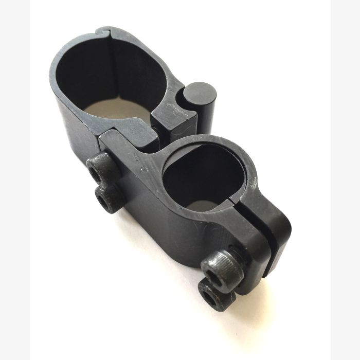 A brake clamp to fit wheel locks to a Quickie Helium or Quickie Xenon wheelchair frame. The clamp can also be used to high mount a footplate on the Helium and Xenon wheelchairs also.